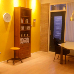 De behandelruimte is ongeveer 30 m2 en beschikbaar voor verhuur per dagdeel (4 uur). De ruimte is modern ingericht en beschikt over een bureau, een behandelbank en wastafel met koud- en warm water.